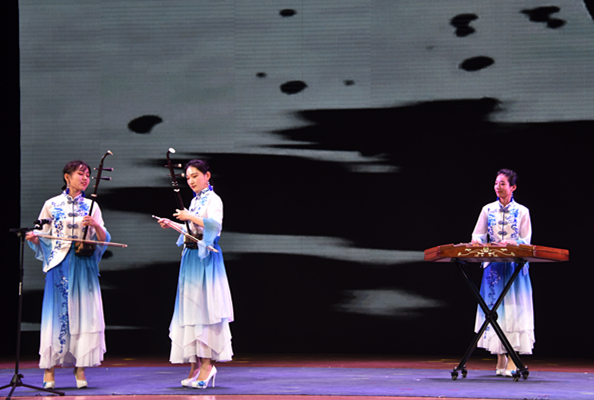 民樂合奏用琵琶、二胡、古箏、揚琴、笛子、嗩吶等中國傳統民族樂器演奏捷克名曲德沃夏克的《斯拉夫舞曲》,是用中國傳統技法演繹西方故事的音樂形式創新;